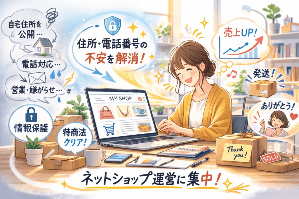 ネットショップの特商法表記で「自宅ではない連絡先」を使えるため、プライバシー対策として検討されやすいサービスです。
